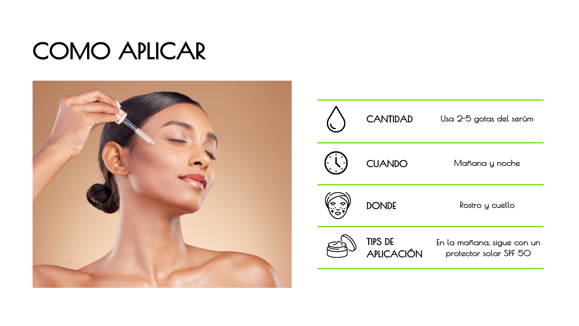 Incluye este tratamiento en tu rutina diaria para obtener una piel más radiante, uniforme y protegida.