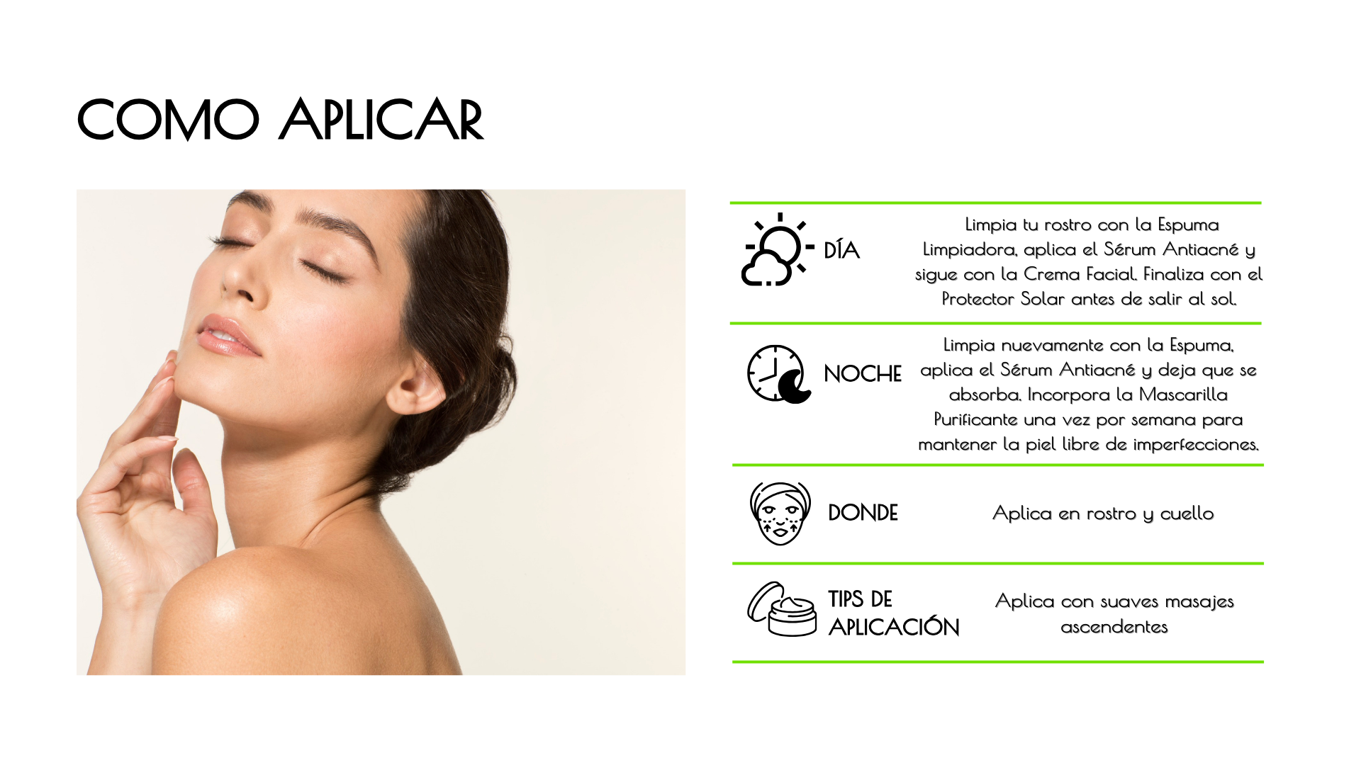 Gracias a la acción combinada del ácido glicólico y salicílico, el kit ayuda a disminuir la aparición de acné y controlar el exceso de grasa, dejando la piel más clara y uniforme.